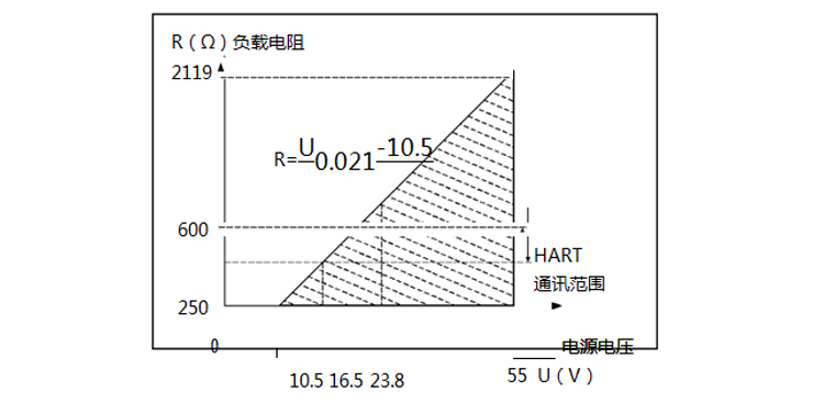 負載電阻 0-2119Ω為工作狀態,250-600Ω