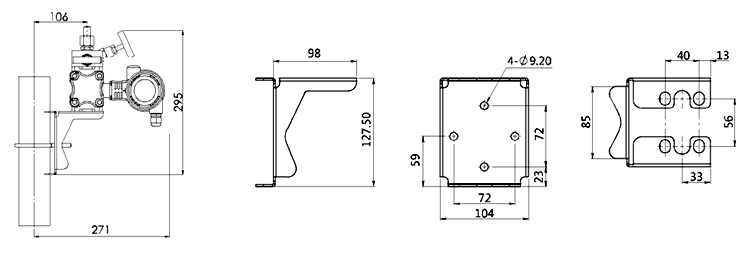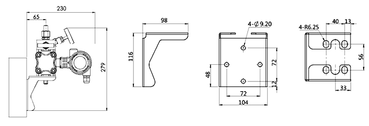 2、板裝彎支架(B2)安裝尺寸圖(單位:mm)