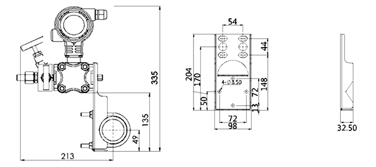 3、管裝平支架(B3)安裝尺寸圖(單位:mm)